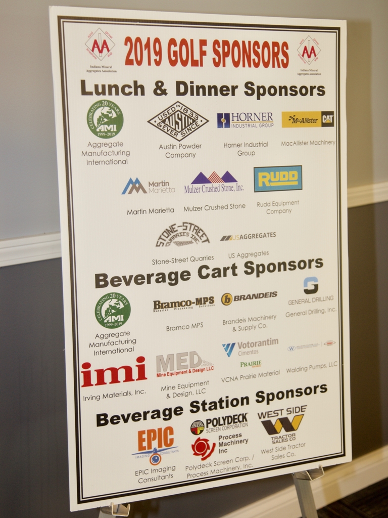 The Indiana Mineral Aggregates Association and the PIE Committee would like to thank all of the generous sponsors who supported the annual golf outing this year. Without the support of the sponsors, volunteers, and IMAA membership, the annual golf outing would not be successful in providing funds for the many outreach activities the Association coordinates every year.